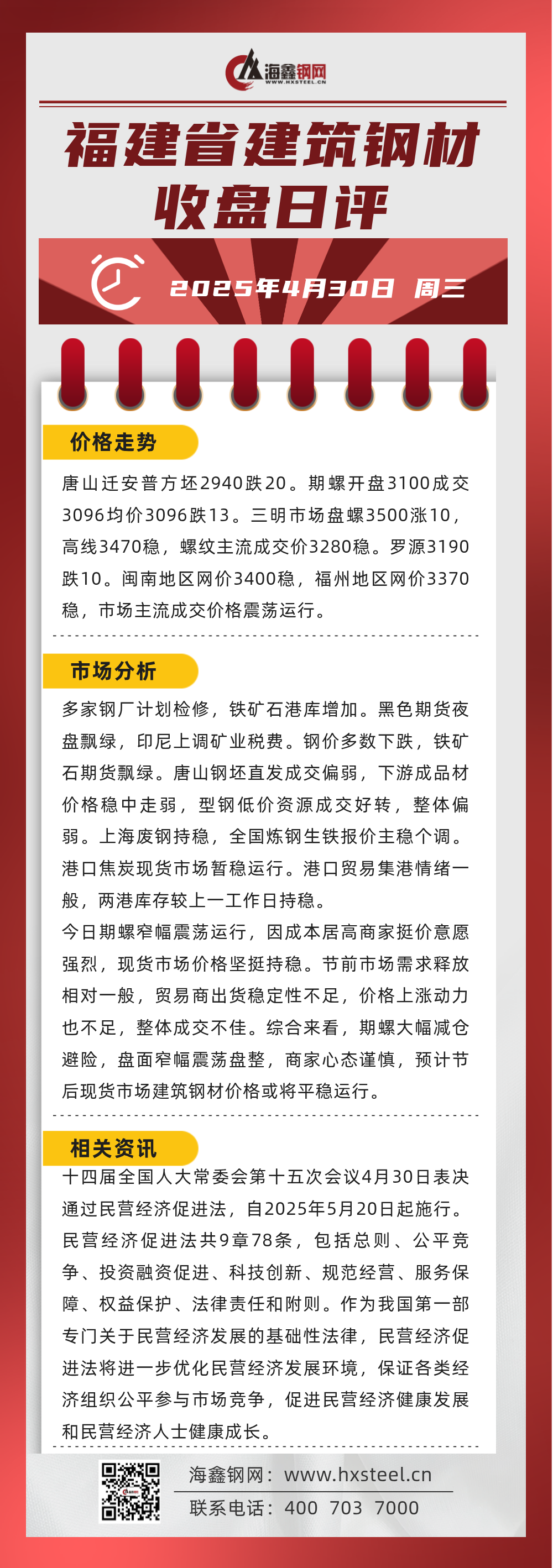 4月30日福建省內建筑鋼材收盤日評